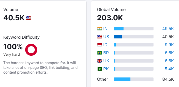 There are a wide number of tools, like Google Keyword Planner, that give the flexibility of free and paid services. This tool shows the average volume of searches in different countries and the difficulty level of a particular keyword.